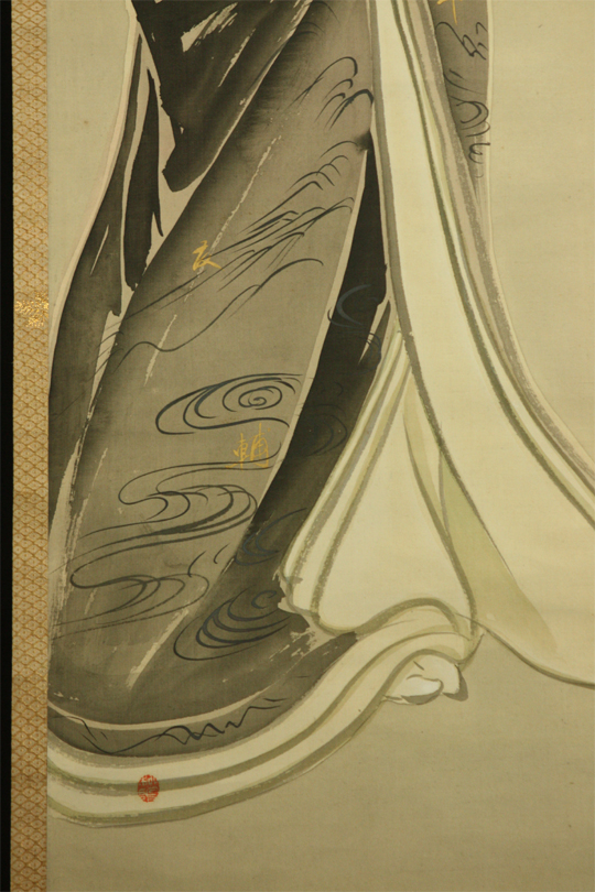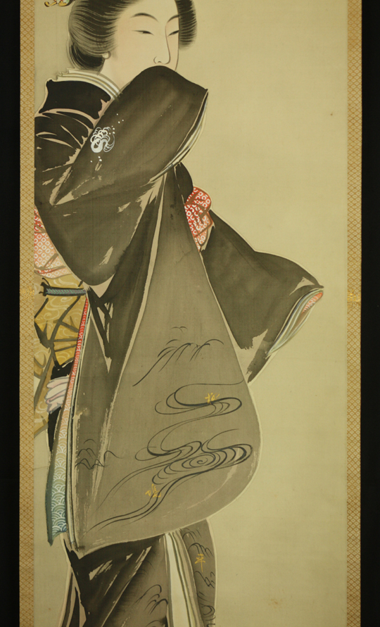 少折れ・少シミ・美人画の表具の一文字が糊浮きしています