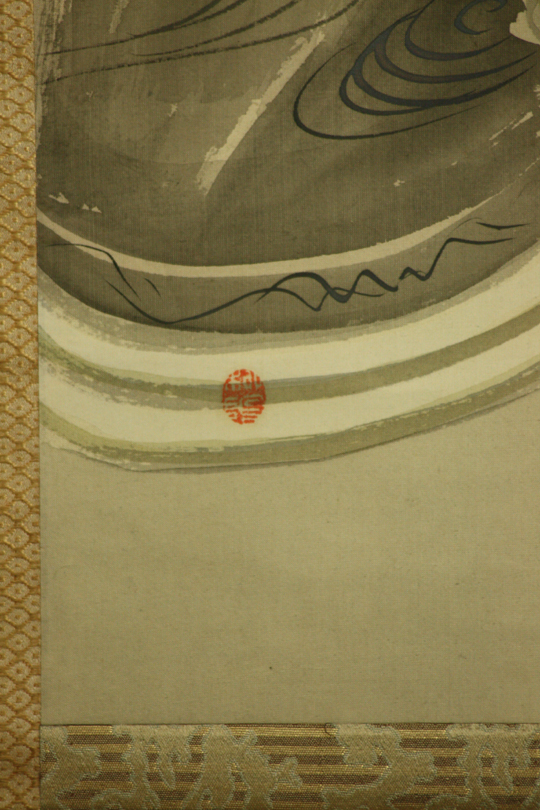 島崎柳塢の落款は着物のデザインとして金彩で描かれています