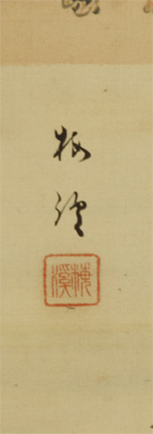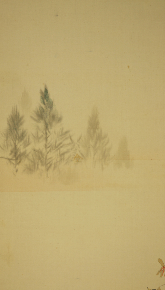 少しシミがあり表具は穴・折れがあります