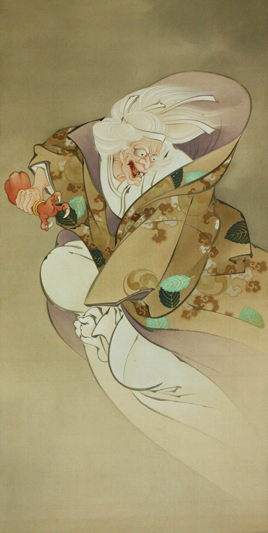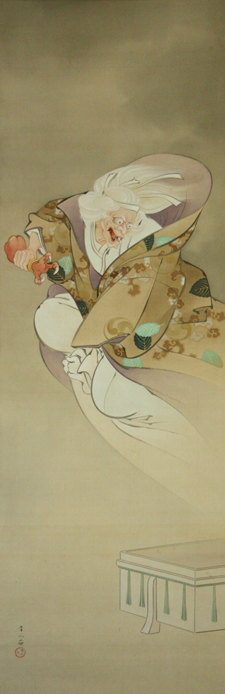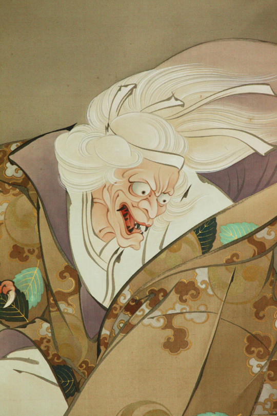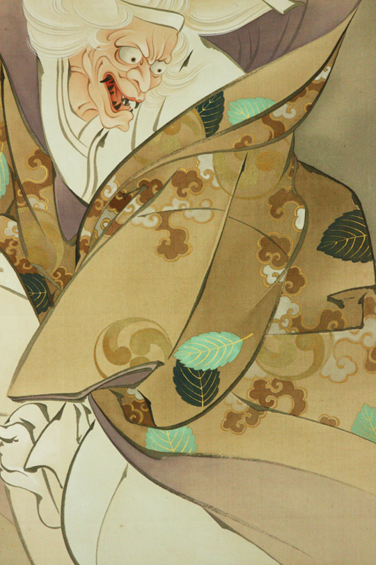 伯母に化けた茨木童子が腕を取り返しにきたという場面。