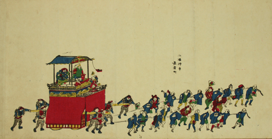| J371-森高雅・小田切春江 名古屋東照宮祭 『卯月御神事十枚続』-木版画巻物- |