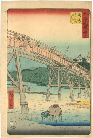 『五十三次名所図会 岡崎 やはき川やはきのはし』