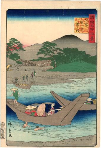 『諸国名所百景 伊勢宮川の渡し場』