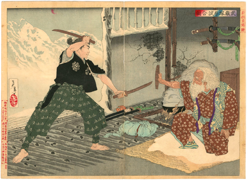 『新撰東錦絵 武蔵塚原試合図』-宮本武蔵・塚原卜伝-